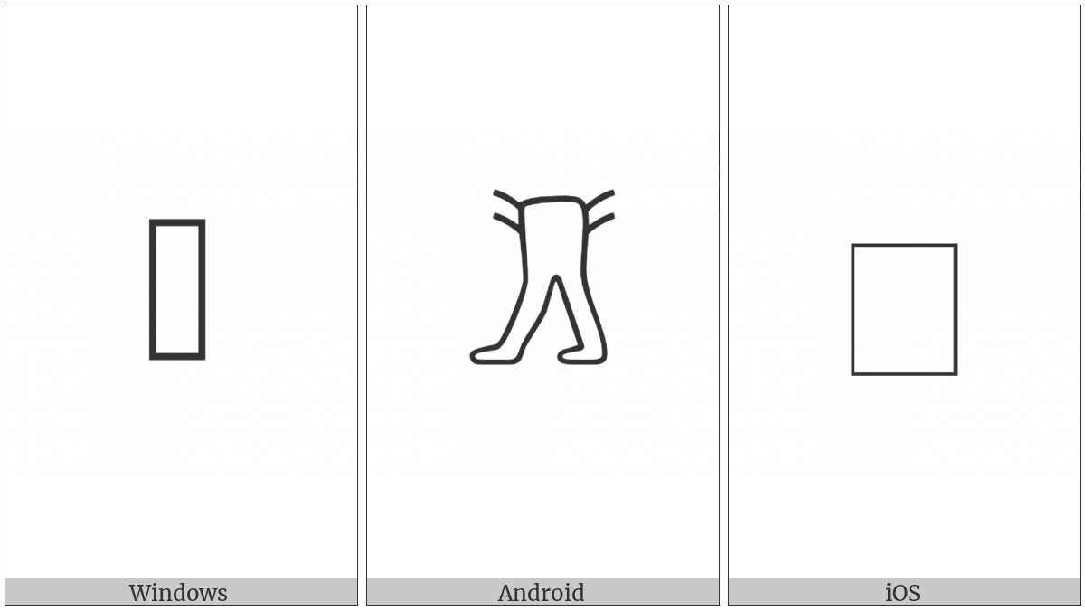 The image below shows how the “Anatolian Hieroglyph A080” symbol might look like on different operating systems. If the font in which this web site is displayed does not contain the symbol and there is no fallback font able to render it, you can use the image below to get an idea of what it should look like.