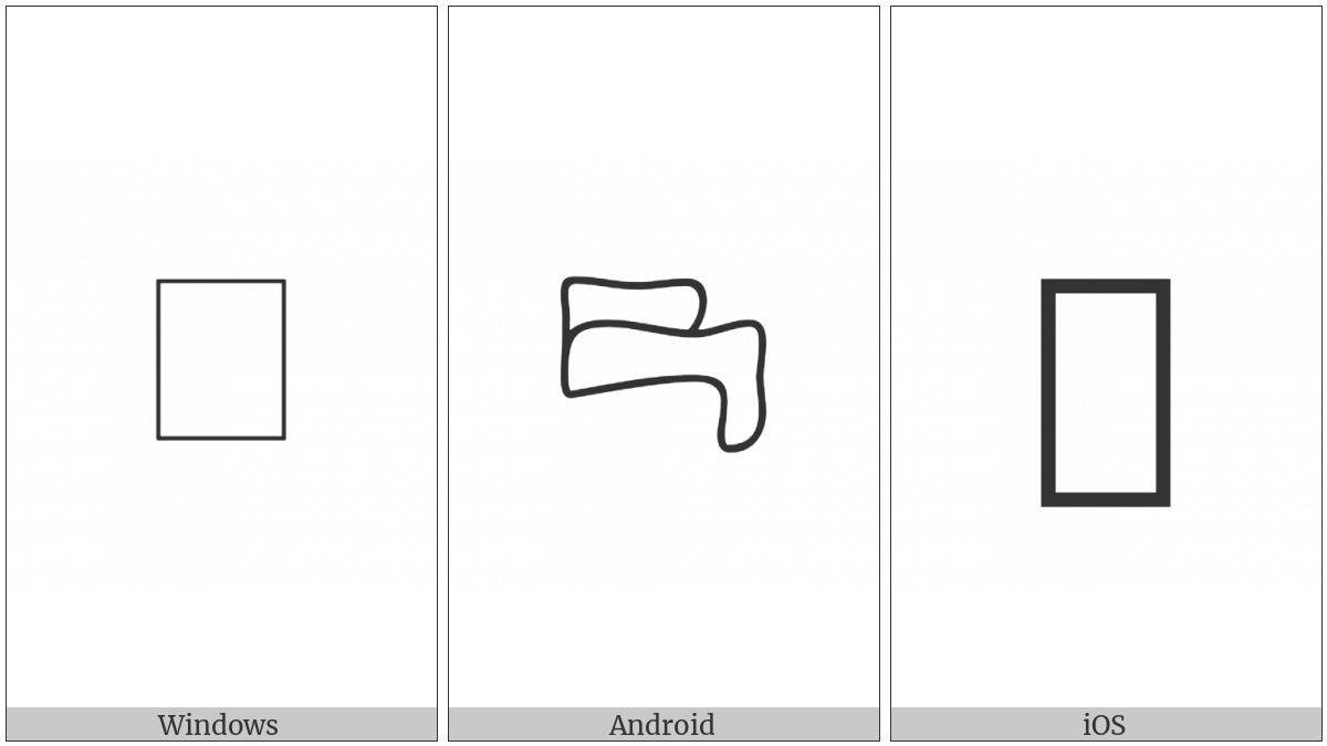 The image below shows how the “Anatolian Hieroglyph A085” symbol might look like on different operating systems. If the font in which this web site is displayed does not contain the symbol and there is no fallback font able to render it, you can use the image below to get an idea of what it should look like.