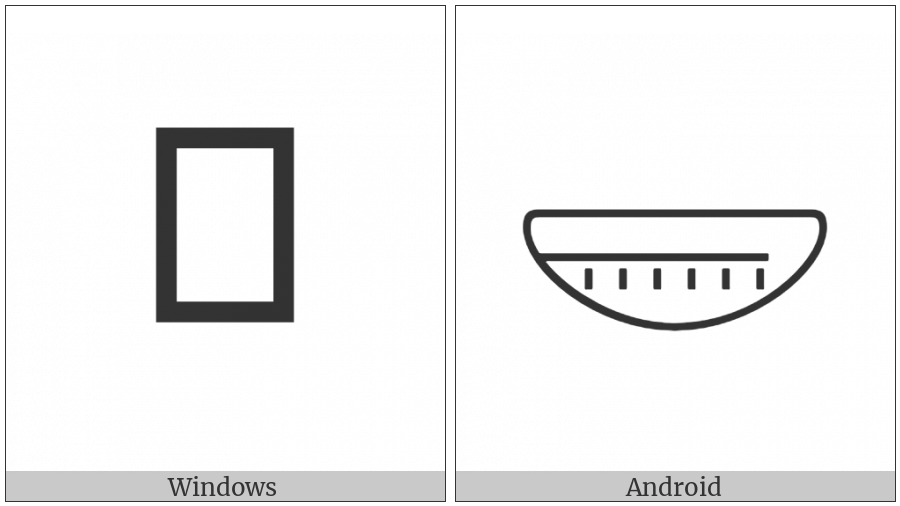The image below shows how the “Anatolian Hieroglyph A182” symbol might look like on different operating systems. If the font in which this web site is displayed does not contain the symbol and there is no fallback font able to render it, you can use the image below to get an idea of what it should look like.