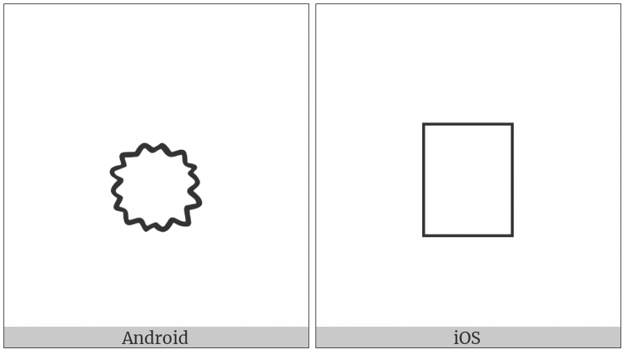 The image below shows how the “Anatolian Hieroglyph A188” symbol might look like on different operating systems. If the font in which this web site is displayed does not contain the symbol and there is no fallback font able to render it, you can use the image below to get an idea of what it should look like.