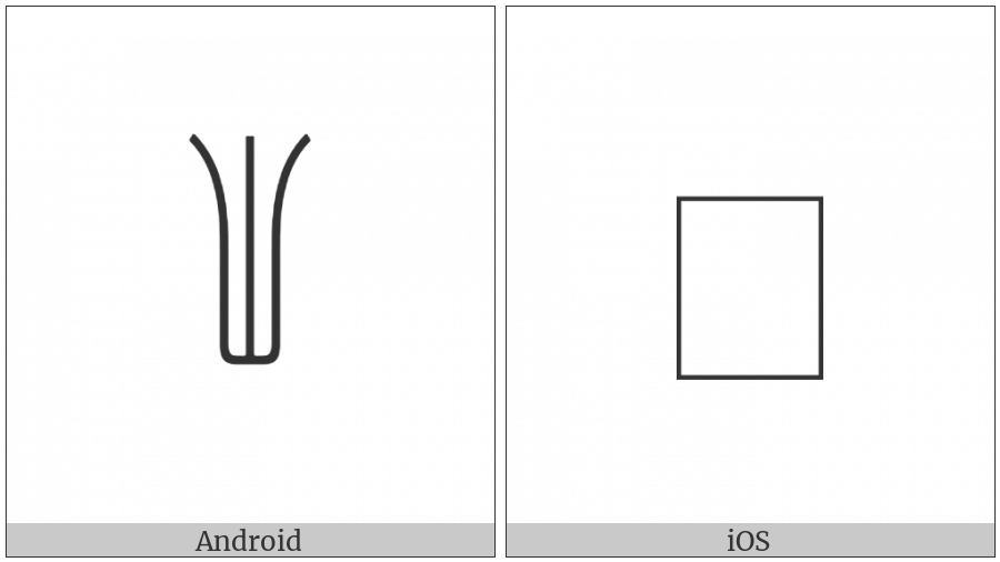 The image below shows how the “Anatolian Hieroglyph A196” symbol might look like on different operating systems. If the font in which this web site is displayed does not contain the symbol and there is no fallback font able to render it, you can use the image below to get an idea of what it should look like.