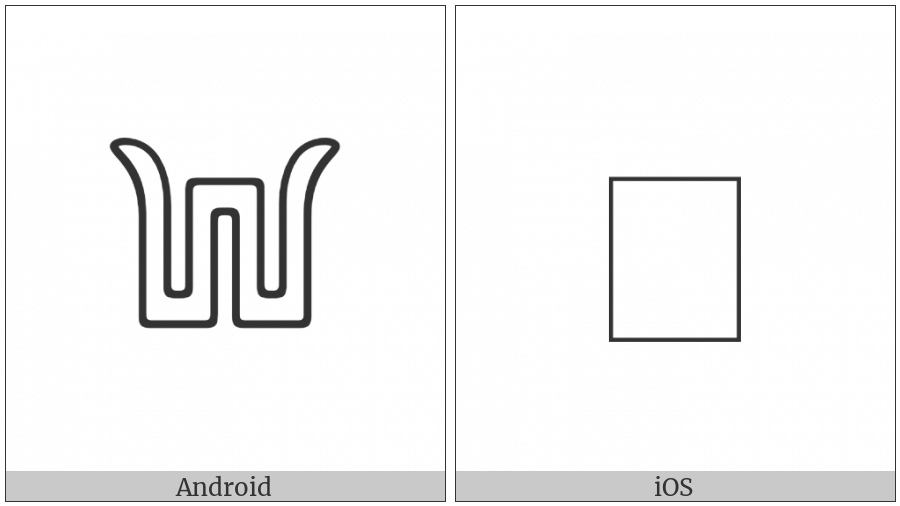 The image below shows how the “Anatolian Hieroglyph A199” symbol might look like on different operating systems. If the font in which this web site is displayed does not contain the symbol and there is no fallback font able to render it, you can use the image below to get an idea of what it should look like.