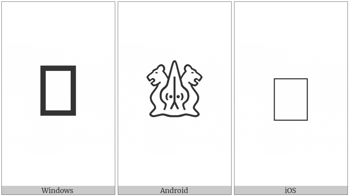 The image below shows how the “Anatolian Hieroglyph A207A” symbol might look like on different operating systems. If the font in which this web site is displayed does not contain the symbol and there is no fallback font able to render it, you can use the image below to get an idea of what it should look like.