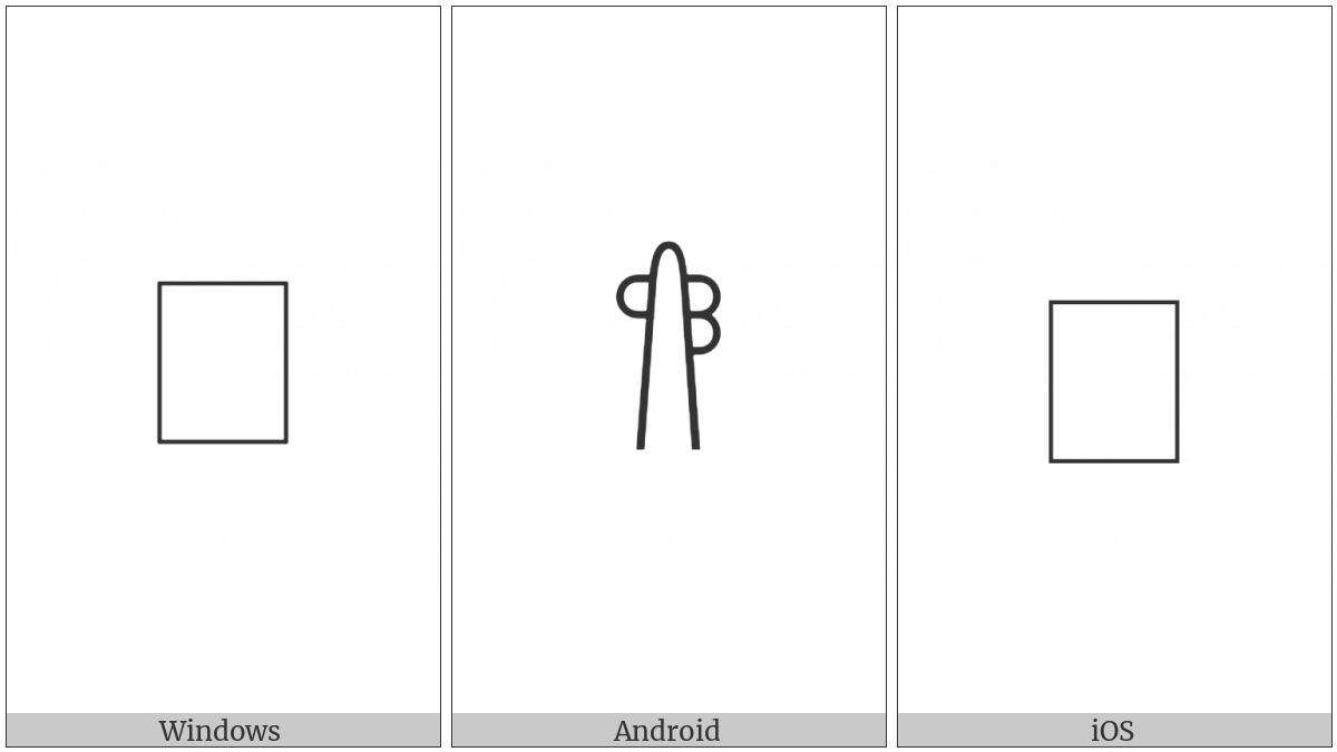 The image below shows how the “Anatolian Hieroglyph A211” symbol might look like on different operating systems. If the font in which this web site is displayed does not contain the symbol and there is no fallback font able to render it, you can use the image below to get an idea of what it should look like.