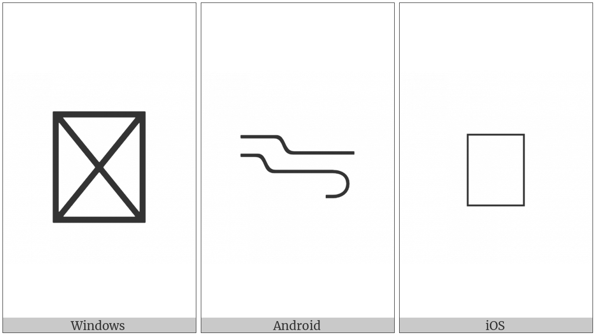 The image below shows how the “Anatolian Hieroglyph A213” symbol might look like on different operating systems. If the font in which this web site is displayed does not contain the symbol and there is no fallback font able to render it, you can use the image below to get an idea of what it should look like.