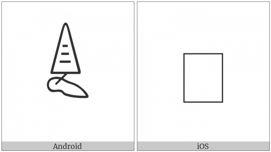 The image below shows how the “Anatolian Hieroglyph A227” symbol might look like on different operating systems. If the font in which this web site is displayed does not contain the symbol and there is no fallback font able to render it, you can use the image below to get an idea of what it should look like.