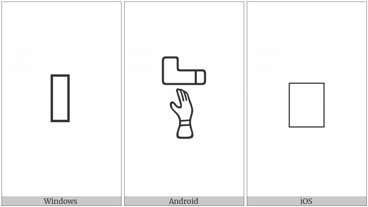 The image below shows how the “Anatolian Hieroglyph A246” symbol might look like on different operating systems. If the font in which this web site is displayed does not contain the symbol and there is no fallback font able to render it, you can use the image below to get an idea of what it should look like.