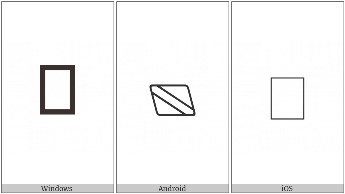 The image below shows how the “Anatolian Hieroglyph A254” symbol might look like on different operating systems. If the font in which this web site is displayed does not contain the symbol and there is no fallback font able to render it, you can use the image below to get an idea of what it should look like.