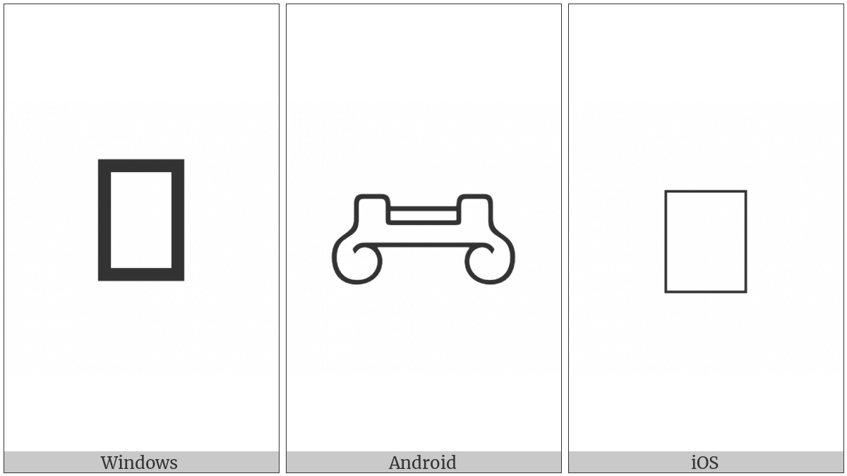 The image below shows how the “Anatolian Hieroglyph A300” symbol might look like on different operating systems. If the font in which this web site is displayed does not contain the symbol and there is no fallback font able to render it, you can use the image below to get an idea of what it should look like.
