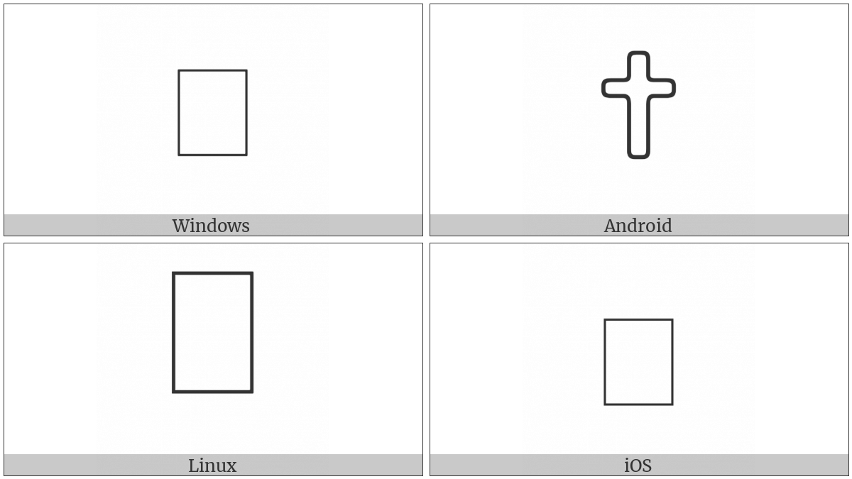 The image below shows how the “Anatolian Hieroglyph A309” symbol might look like on different operating systems. If the font in which this web site is displayed does not contain the symbol and there is no fallback font able to render it, you can use the image below to get an idea of what it should look like.