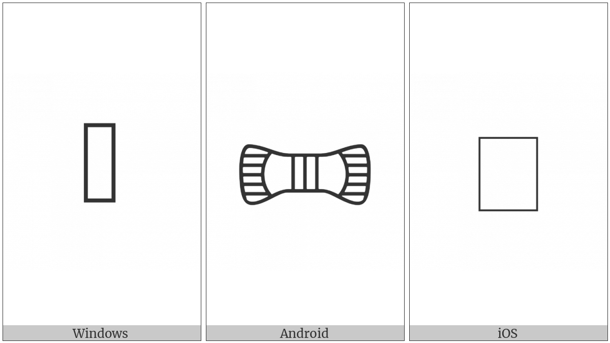 The image below shows how the “Anatolian Hieroglyph A322” symbol might look like on different operating systems. If the font in which this web site is displayed does not contain the symbol and there is no fallback font able to render it, you can use the image below to get an idea of what it should look like.