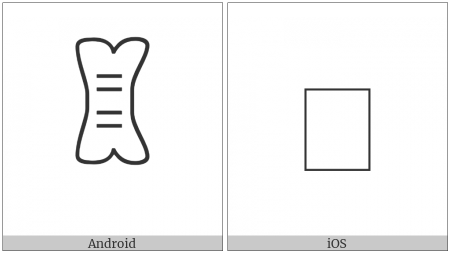 The image below shows how the “Anatolian Hieroglyph A324” symbol might look like on different operating systems. If the font in which this web site is displayed does not contain the symbol and there is no fallback font able to render it, you can use the image below to get an idea of what it should look like.