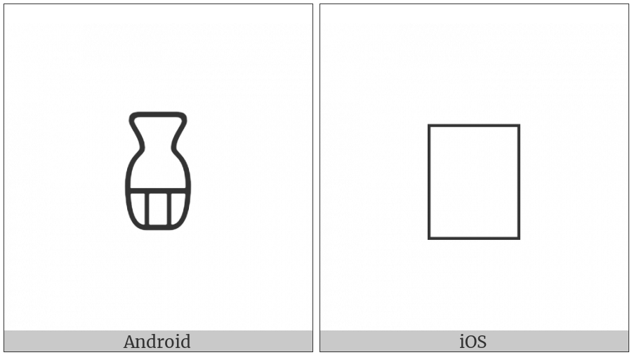 The image below shows how the “Anatolian Hieroglyph A327” symbol might look like on different operating systems. If the font in which this web site is displayed does not contain the symbol and there is no fallback font able to render it, you can use the image below to get an idea of what it should look like.
