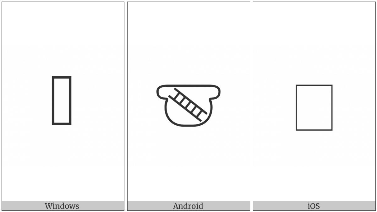 The image below shows how the “Anatolian Hieroglyph A335” symbol might look like on different operating systems. If the font in which this web site is displayed does not contain the symbol and there is no fallback font able to render it, you can use the image below to get an idea of what it should look like.