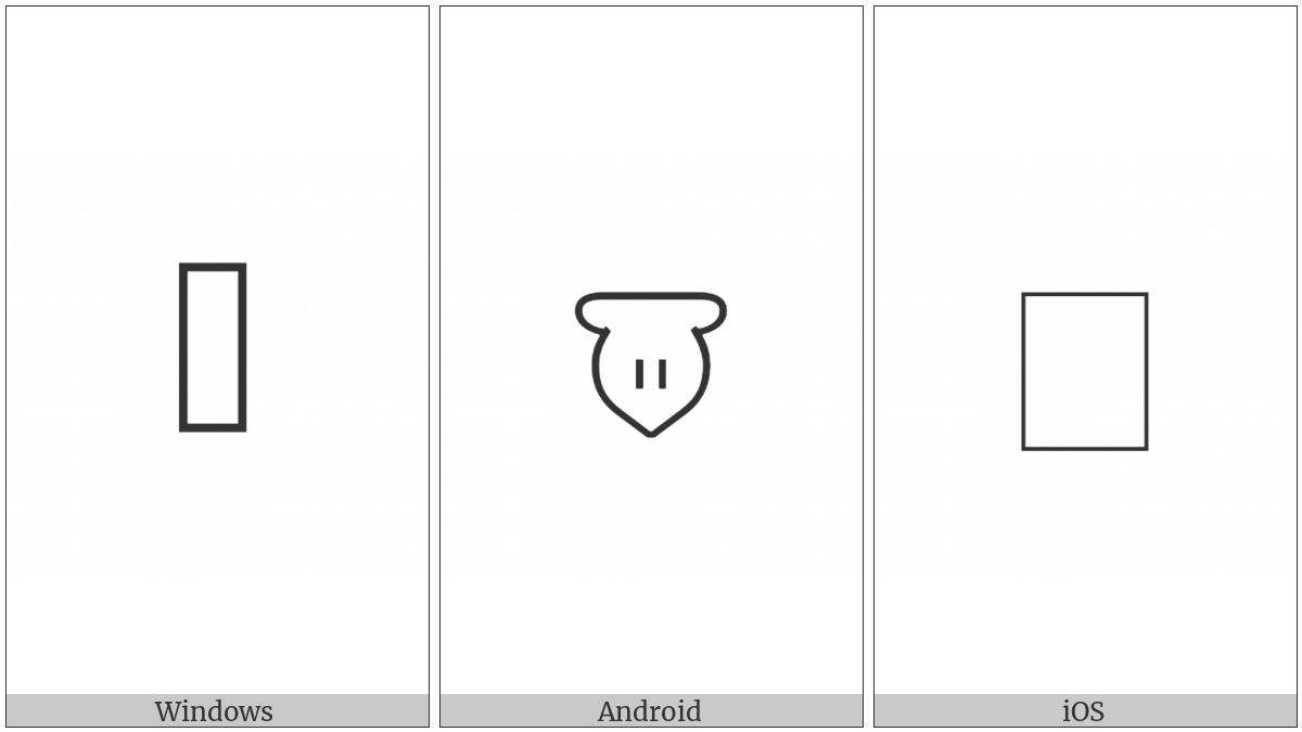The image below shows how the “Anatolian Hieroglyph A341” symbol might look like on different operating systems. If the font in which this web site is displayed does not contain the symbol and there is no fallback font able to render it, you can use the image below to get an idea of what it should look like.