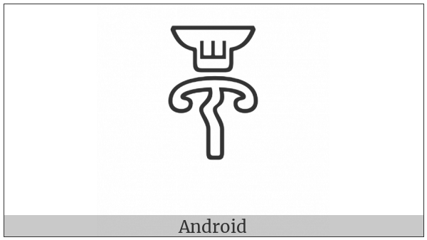 The image below shows how the “Anatolian Hieroglyph A350” symbol might look like on different operating systems. If the font in which this web site is displayed does not contain the symbol and there is no fallback font able to render it, you can use the image below to get an idea of what it should look like.