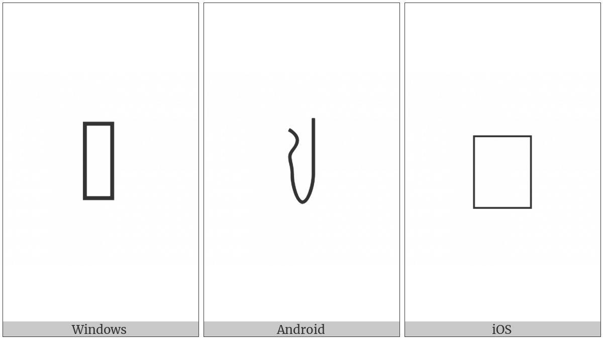 The image below shows how the “Anatolian Hieroglyph A450” symbol might look like on different operating systems. If the font in which this web site is displayed does not contain the symbol and there is no fallback font able to render it, you can use the image below to get an idea of what it should look like.