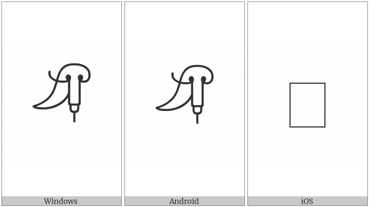 The image below shows how the “Anatolian Hieroglyph A458” symbol might look like on different operating systems. If the font in which this web site is displayed does not contain the symbol and there is no fallback font able to render it, you can use the image below to get an idea of what it should look like.