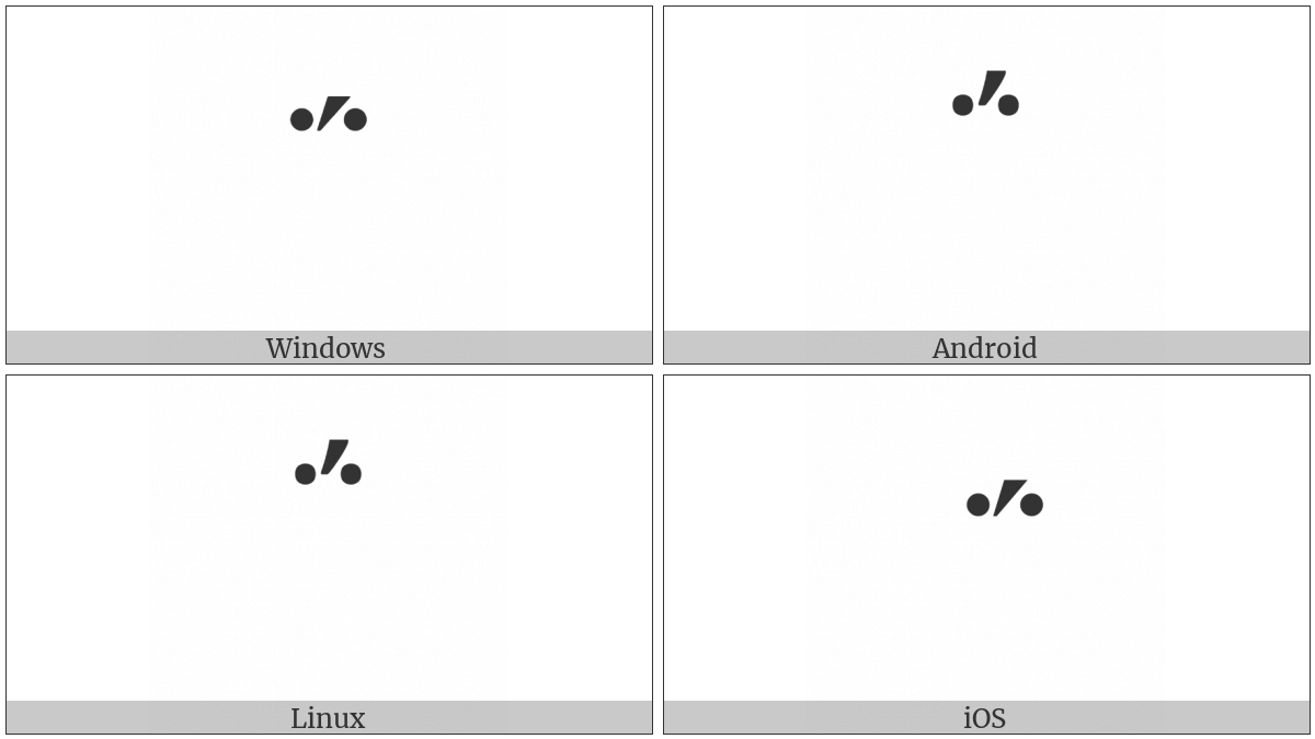The image below shows how the “Combining Greek Dialytika Tonos” symbol might look like on different operating systems. If the font in which this web site is displayed does not contain the symbol and there is no fallback font able to render it, you can use the image below to get an idea of what it should look like.
