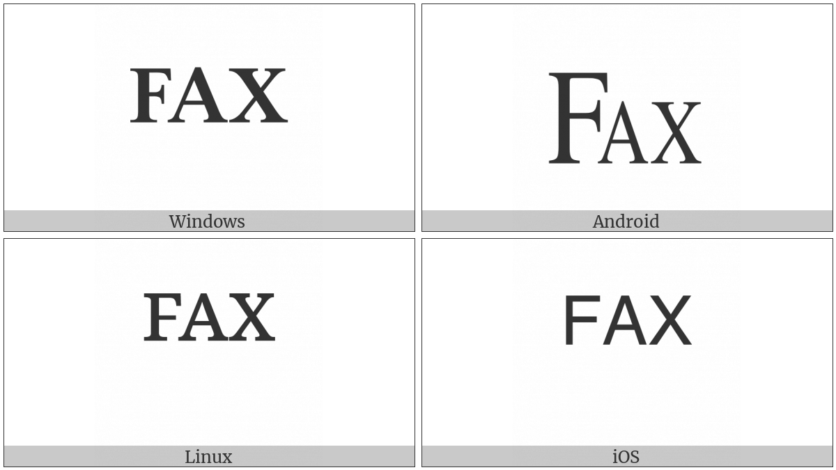 The image below shows how the “Facsimile Sign” symbol might look like on different operating systems. If the font in which this web site is displayed does not contain the symbol and there is no fallback font able to render it, you can use the image below to get an idea of what it should look like.
