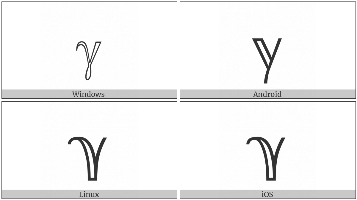 The image below shows how the “Double-Struck Small Gamma” symbol might look like on different operating systems. If the font in which this web site is displayed does not contain the symbol and there is no fallback font able to render it, you can use the image below to get an idea of what it should look like.