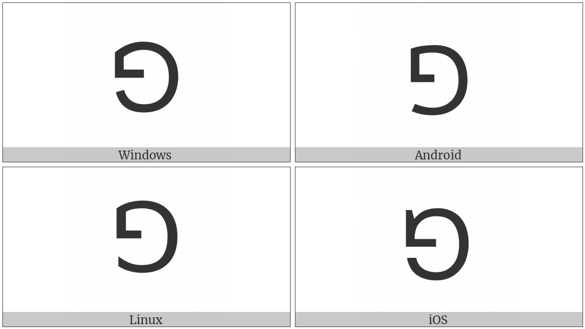 The image below shows how the “Turned Sans-Serif Capital G” symbol might look like on different operating systems. If the font in which this web site is displayed does not contain the symbol and there is no fallback font able to render it, you can use the image below to get an idea of what it should look like.