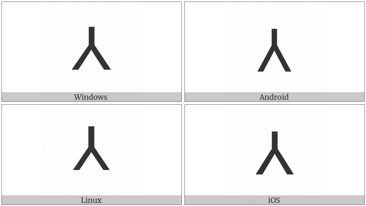 The image below shows how the “Turned Sans-Serif Capital Y” symbol might look like on different operating systems. If the font in which this web site is displayed does not contain the symbol and there is no fallback font able to render it, you can use the image below to get an idea of what it should look like.