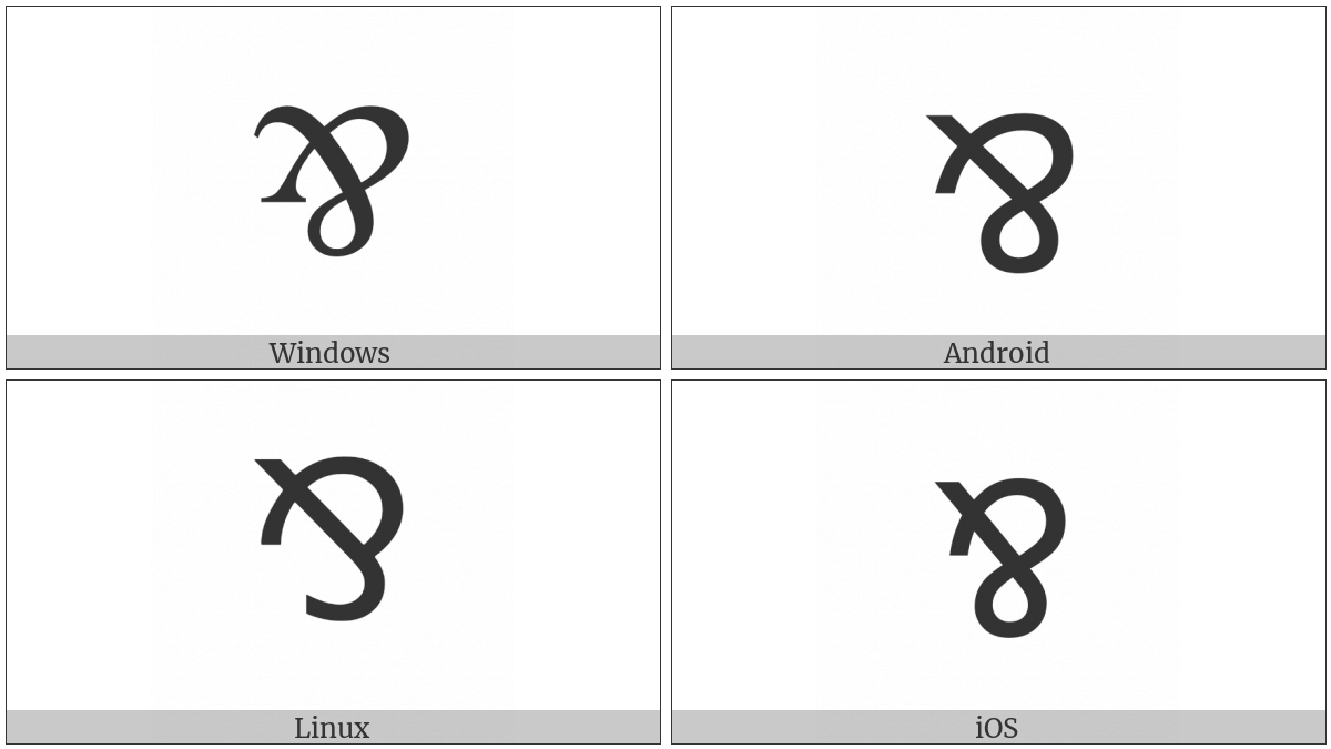The image below shows how the “Turned Ampersand” symbol might look like on different operating systems. If the font in which this web site is displayed does not contain the symbol and there is no fallback font able to render it, you can use the image below to get an idea of what it should look like.