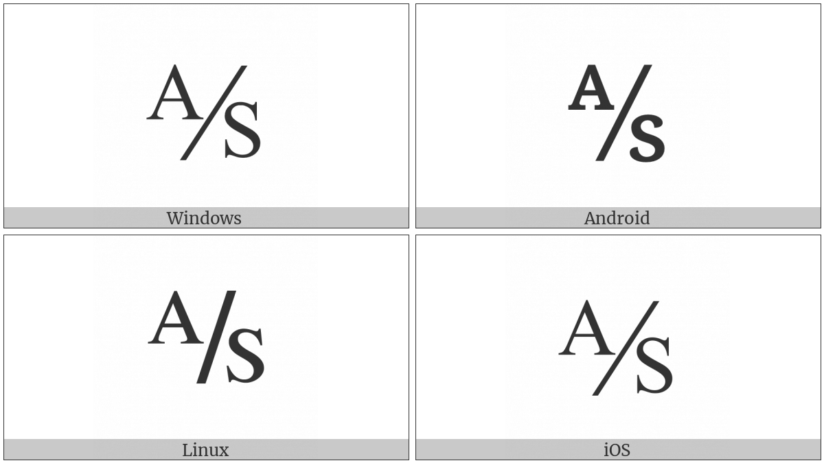 The image below shows how the “Aktieselskab” symbol might look like on different operating systems. If the font in which this web site is displayed does not contain the symbol and there is no fallback font able to render it, you can use the image below to get an idea of what it should look like.