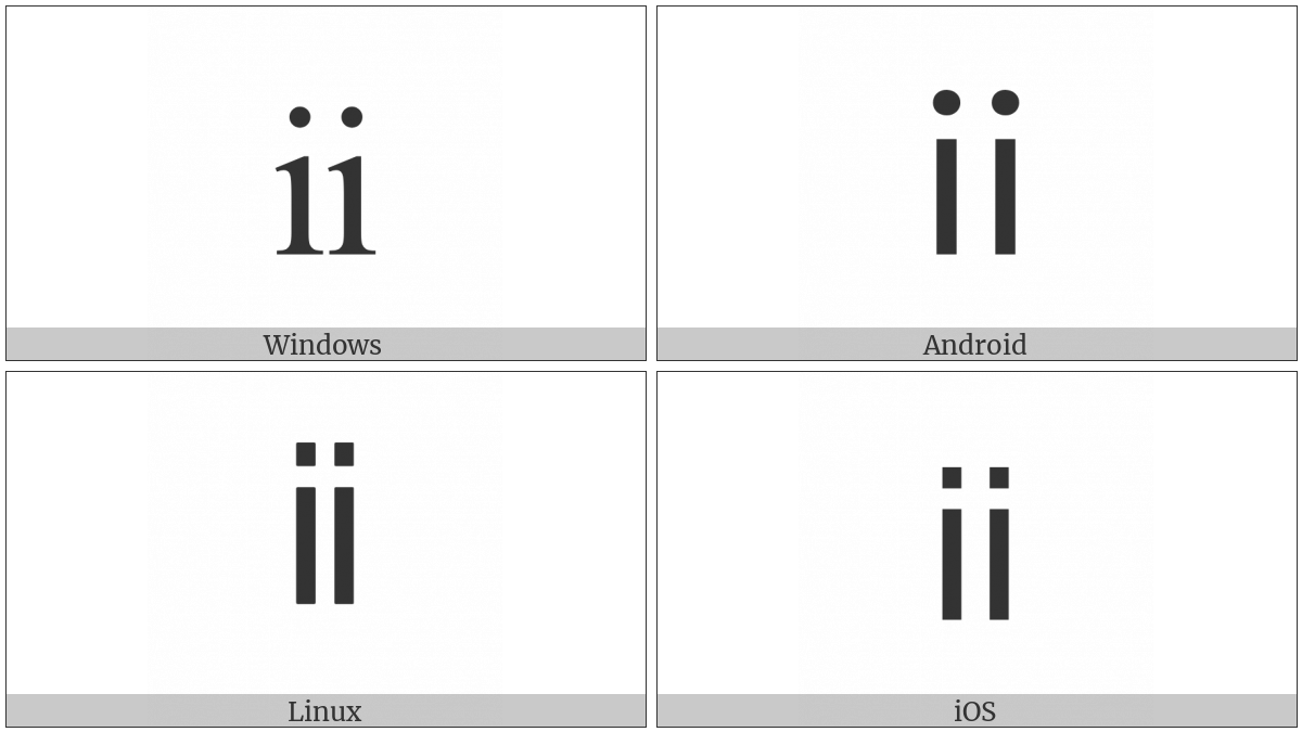 The image below shows how the “Small Roman Numeral Two” symbol might look like on different operating systems. If the font in which this web site is displayed does not contain the symbol and there is no fallback font able to render it, you can use the image below to get an idea of what it should look like.