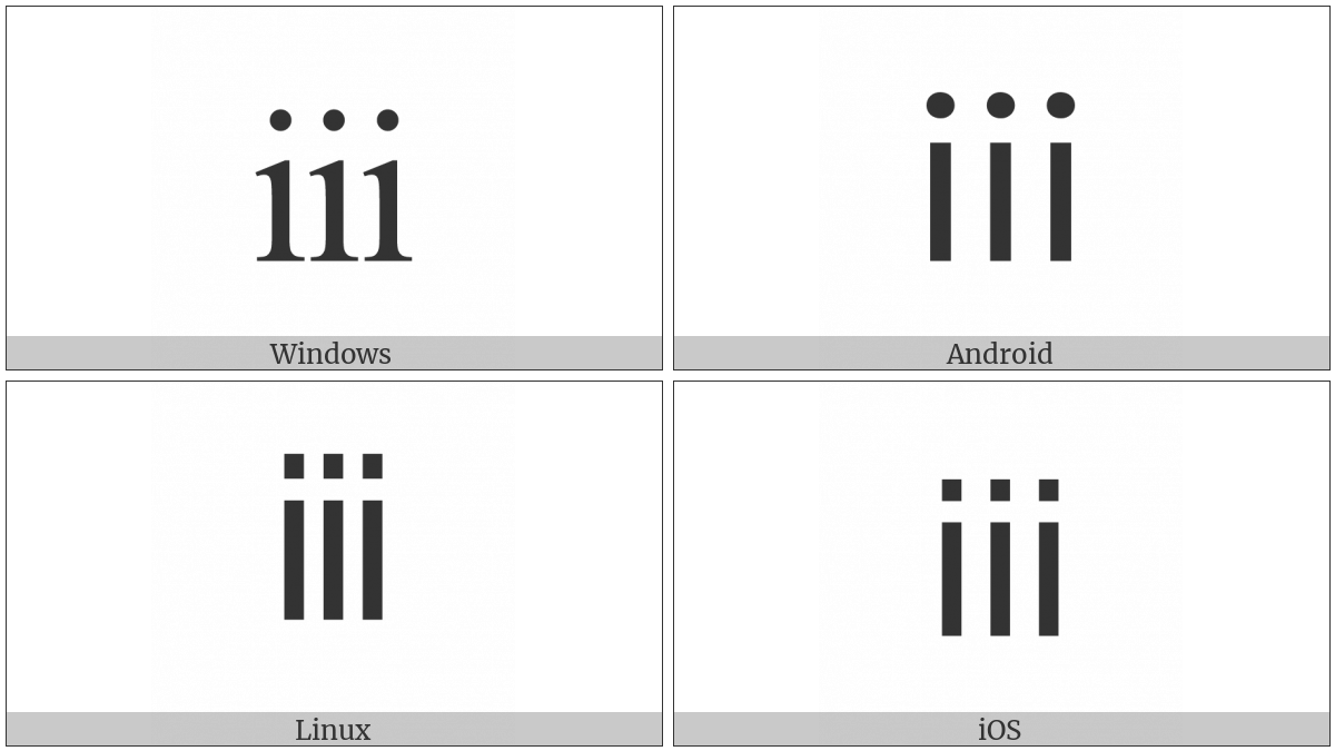The image below shows how the “Small Roman Numeral Three” symbol might look like on different operating systems. If the font in which this web site is displayed does not contain the symbol and there is no fallback font able to render it, you can use the image below to get an idea of what it should look like.