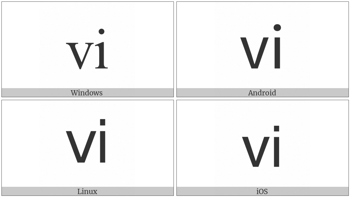 The image below shows how the “Small Roman Numeral Six” symbol might look like on different operating systems. If the font in which this web site is displayed does not contain the symbol and there is no fallback font able to render it, you can use the image below to get an idea of what it should look like.