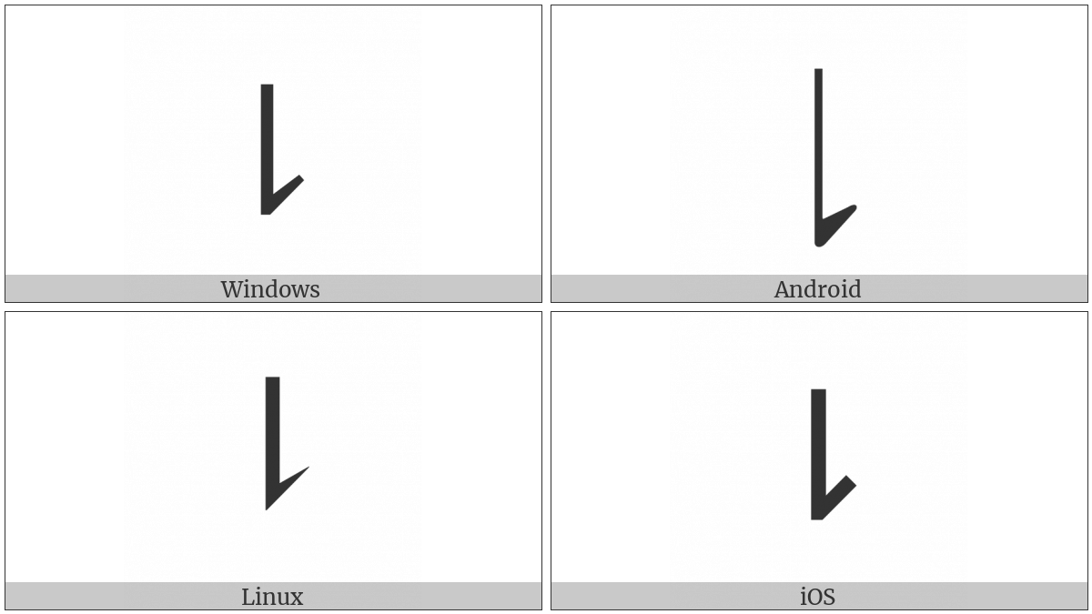 The image below shows how the “Downwards Harpoon With Barb Rightwards” symbol might look like on different operating systems. If the font in which this web site is displayed does not contain the symbol and there is no fallback font able to render it, you can use the image below to get an idea of what it should look like.