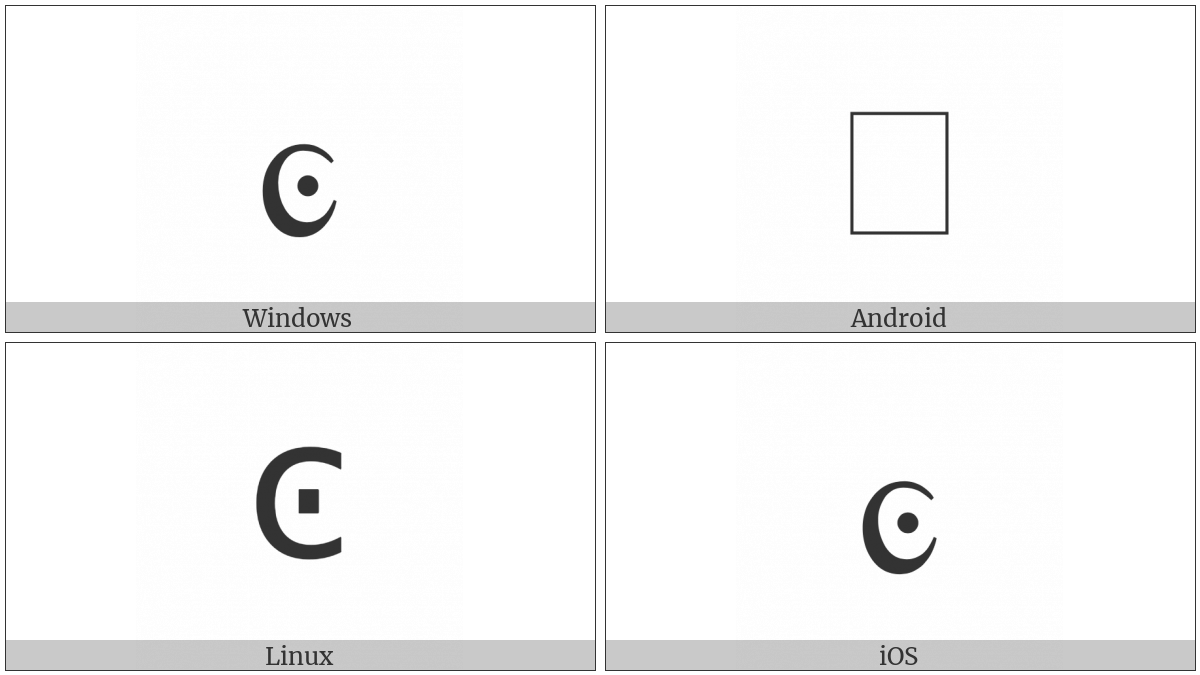 The image below shows how the “Greek Small Dotted Lunate Sigma Symbol” symbol might look like on different operating systems. If the font in which this web site is displayed does not contain the symbol and there is no fallback font able to render it, you can use the image below to get an idea of what it should look like.