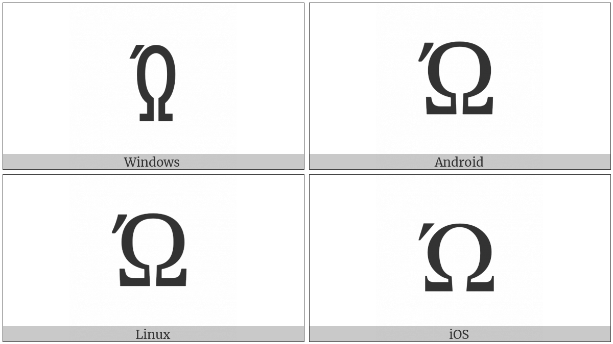 “Greek Capital Letter Omega With Tonos” on various operating systems