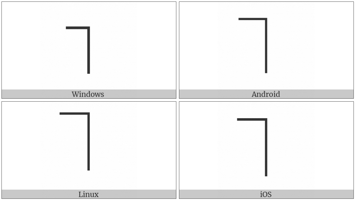 The image below shows how the “Dentistry Symbol Light Vertical And Top Left” symbol might look like on different operating systems. If the font in which this web site is displayed does not contain the symbol and there is no fallback font able to render it, you can use the image below to get an idea of what it should look like.