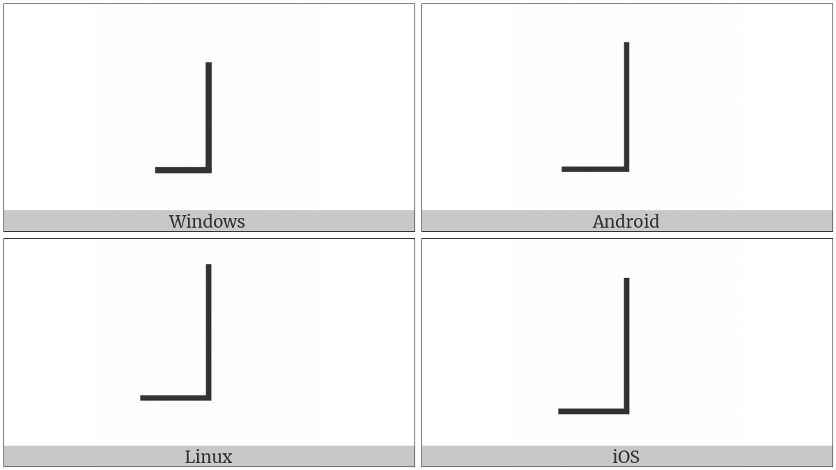 The image below shows how the “Dentistry Symbol Light Vertical And Bottom Left” symbol might look like on different operating systems. If the font in which this web site is displayed does not contain the symbol and there is no fallback font able to render it, you can use the image below to get an idea of what it should look like.