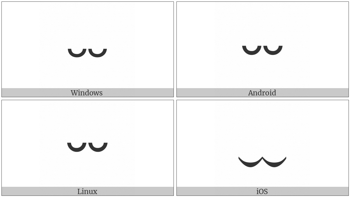 The image below shows how the “Metrical Two Shorts Joined” symbol might look like on different operating systems. If the font in which this web site is displayed does not contain the symbol and there is no fallback font able to render it, you can use the image below to get an idea of what it should look like.