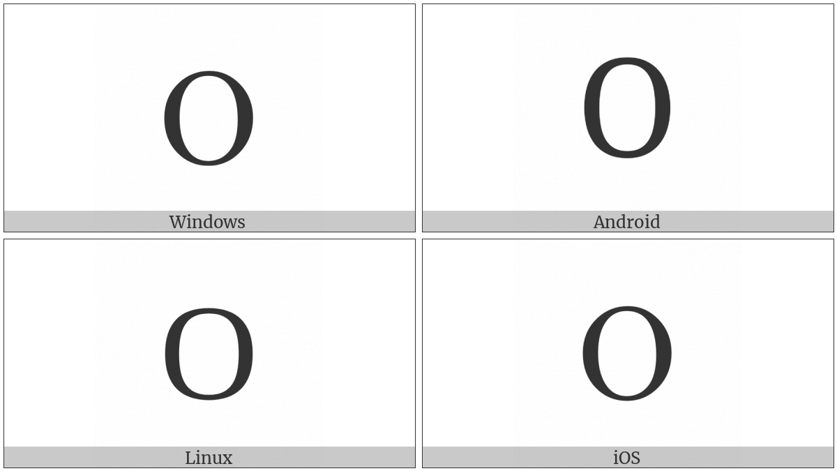 The image below shows how the “Greek Capital Letter Omicron” symbol might look like on different operating systems. If the font in which this web site is displayed does not contain the symbol and there is no fallback font able to render it, you can use the image below to get an idea of what it should look like.