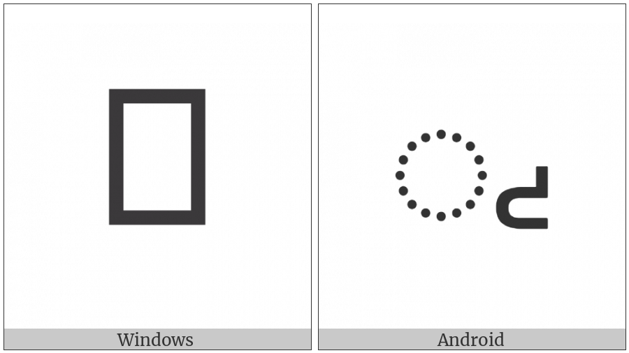 The image below shows how the “Miao Vowel Sign Aee” symbol might look like on different operating systems. If the font in which this web site is displayed does not contain the symbol and there is no fallback font able to render it, you can use the image below to get an idea of what it should look like.