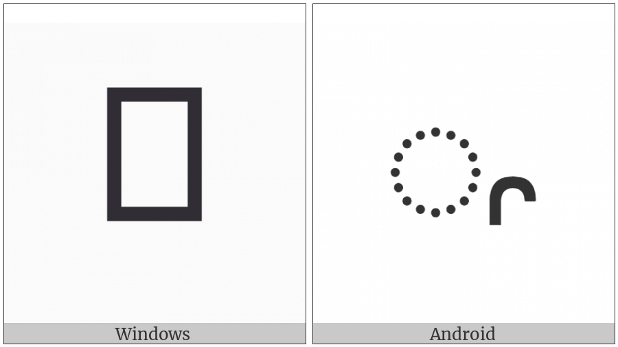 The image below shows how the “Miao Vowel Sign Rounded Er” symbol might look like on different operating systems. If the font in which this web site is displayed does not contain the symbol and there is no fallback font able to render it, you can use the image below to get an idea of what it should look like.