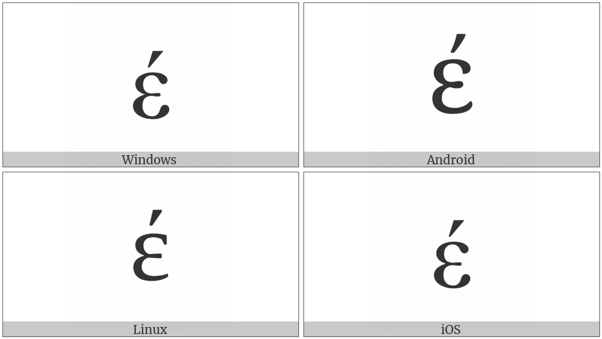 “Greek Small Letter Epsilon With Tonos” on various operating systems