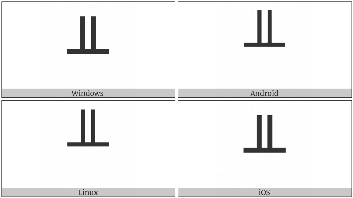 The image below shows how the “Box Drawings Up Double And Horizontal Single” symbol might look like on different operating systems. If the font in which this web site is displayed does not contain the symbol and there is no fallback font able to render it, you can use the image below to get an idea of what it should look like.