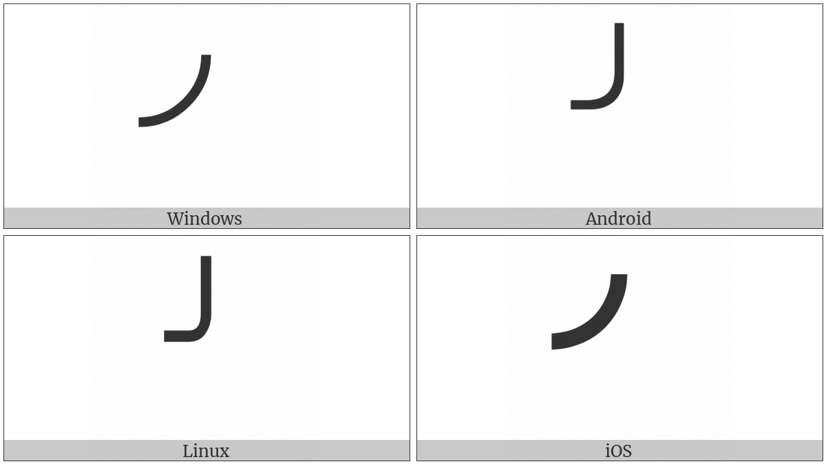 Box Drawings Light Arc Up And Left on various operating systems