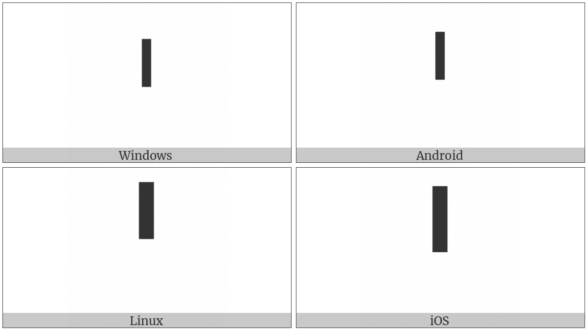 The image below shows how the “Box Drawings Heavy Up” symbol might look like on different operating systems. If the font in which this web site is displayed does not contain the symbol and there is no fallback font able to render it, you can use the image below to get an idea of what it should look like.