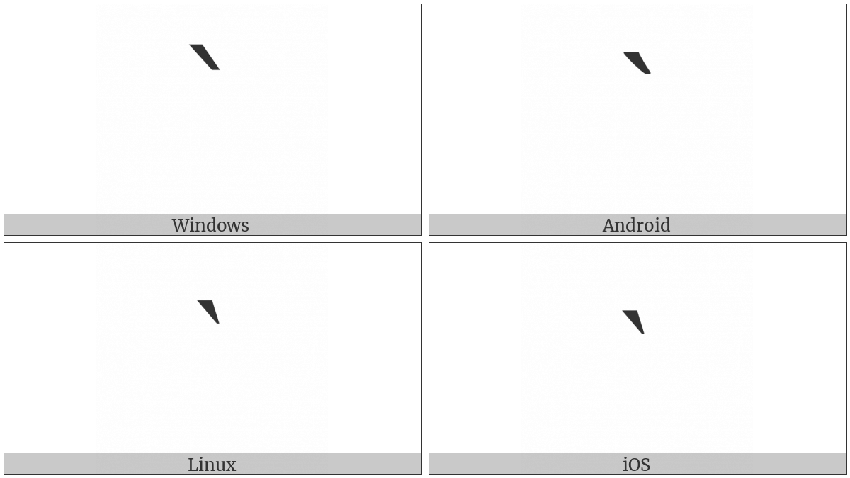 The image below shows how the “Grave Accent” symbol might look like on different operating systems. If the font in which this web site is displayed does not contain the symbol and there is no fallback font able to render it, you can use the image below to get an idea of what it should look like.