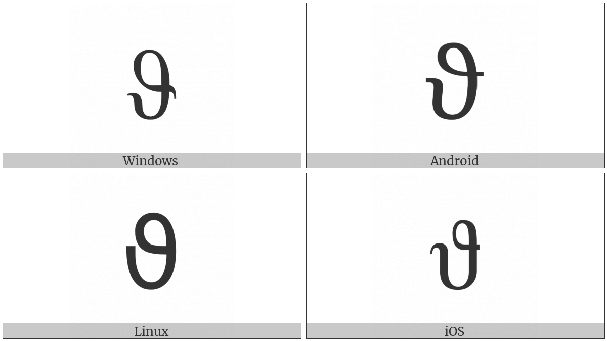 The image below shows how the “Greek Theta Symbol” symbol might look like on different operating systems. If the font in which this web site is displayed does not contain the symbol and there is no fallback font able to render it, you can use the image below to get an idea of what it should look like.
