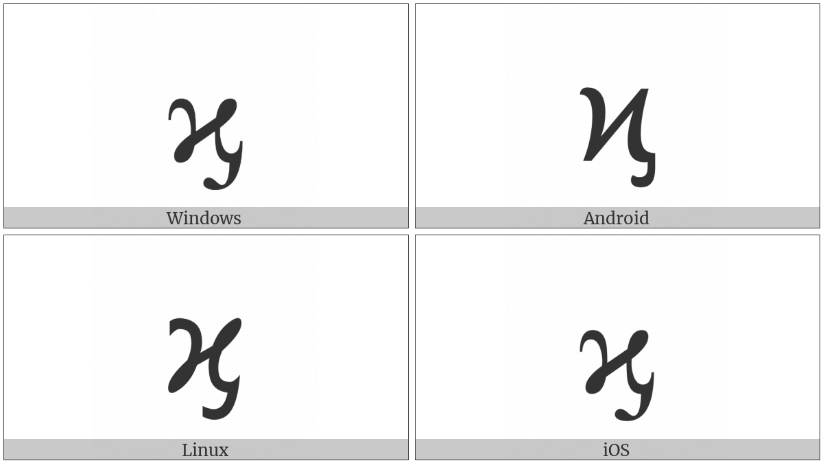 The image below shows how the “Greek Kai Symbol” symbol might look like on different operating systems. If the font in which this web site is displayed does not contain the symbol and there is no fallback font able to render it, you can use the image below to get an idea of what it should look like.