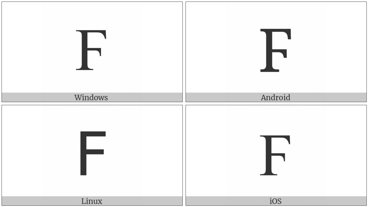 The image below shows how the “Greek Letter Digamma” symbol might look like on different operating systems. If the font in which this web site is displayed does not contain the symbol and there is no fallback font able to render it, you can use the image below to get an idea of what it should look like.