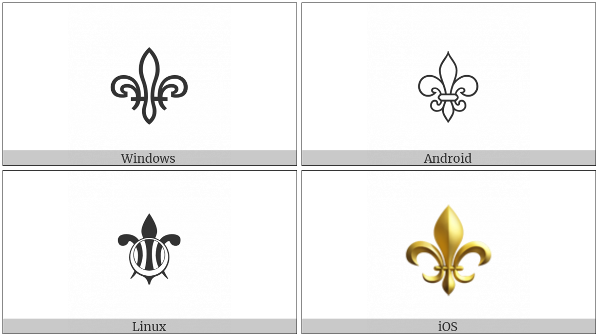 The image below shows how the “Fleur-De-Lis” symbol might look like on different operating systems. If the font in which this web site is displayed does not contain the symbol and there is no fallback font able to render it, you can use the image below to get an idea of what it should look like.